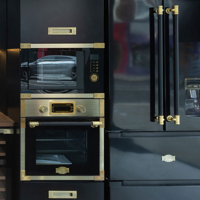 We offer a stunning range of colors and truly unique styles to suit any kitchen aesthetic. From timeless shades like black and stainless steel to more distinctive options like Bordeaux Red, Classic Ivory, and Black with Gold accents. Explore one-of-a-kind features such as leather handles and antique brass trims, making your kitchen appliances as striking and individual as your home design.