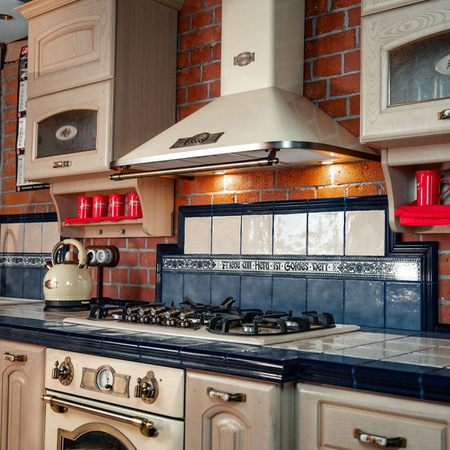 Our Belle Epoque cooker hoods also boast a luxurious leather-handle rod. Not only does this look entirely elegant in your kitchen, but it's also handy for quickly hanging a towel, some oven mitts or the utensils you're using whilst cooking. Convenience meets elegance with the Kaiser Belle Epoque collection.