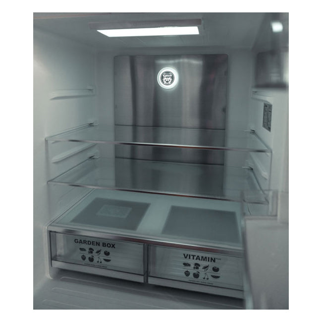 This is a French door-style fridge freezer, with the refrigerator towards the top of the appliance and the freezer at the bottom section. There's a 60/40 split, with the refrigerator having a huge 323-litre capacity, and the freezer having a 183-litre capacity. This gives a great amount of space in both compartments for larger households.