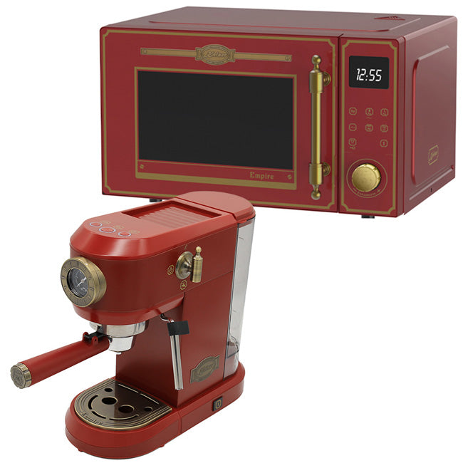Empire 900W Microwave & Espresso Coffee Machine Bundle (Red)