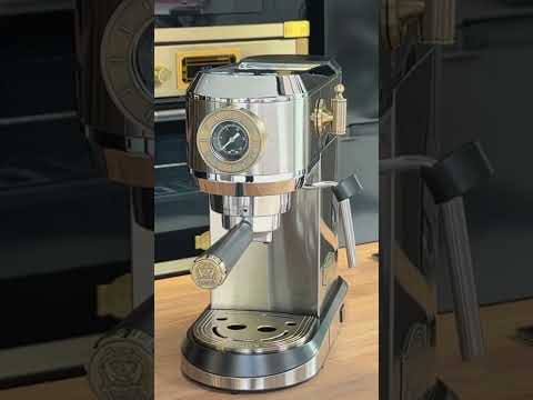 The KA 2005 Em espresso machine delivers professional coffee at home with ease. Its 19-bar pump ensures the perfect espresso, with fast heating thanks to the Thermoblock system. Use your choice of ground coffee, pods, or capsules, while the milk frother lets you craft lattes, cappuccinos, and more. The retro design with bronze accents makes it a showpiece in your kitchen.