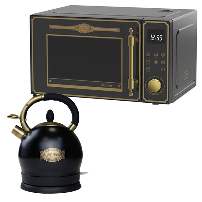 Empire Freestanding 900W Microwave Oven and Kettle Bundle (Black)
