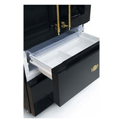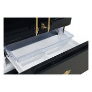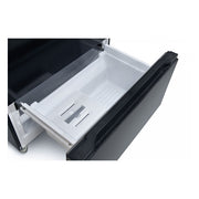 On the front of the appliance, you have an easy-to-use digital display, with a clock function & a cold water dispenser. This water dispenser is operated from a refillable internal water tank. Therefore does not need any connection to your mains water supply for easy fitting in your kitchen.