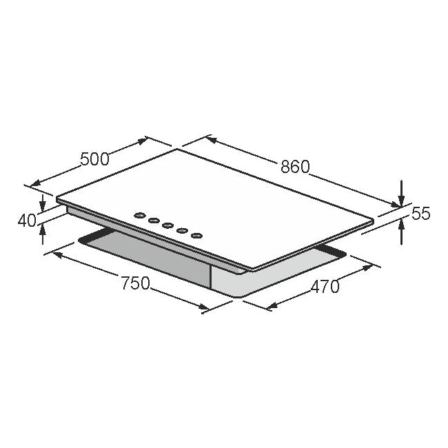 • Hob Dimensions (cm): = H x 5.5, W x 86, D x 50