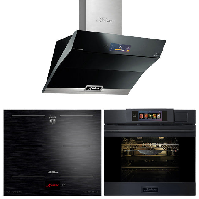 This La Perle Noire bundle pairs three premium appliances in a bold graphite grey Moiré finish. The multifunctional steam oven delivers 37 cooking modes for professional-level versatility, the 59cm induction hob offers Free Zone flexibility with TFT controls, and the 90cm TFT cooker hood provides intelligent, high-performance extraction. Together, they create a seamless and modern kitchen package.